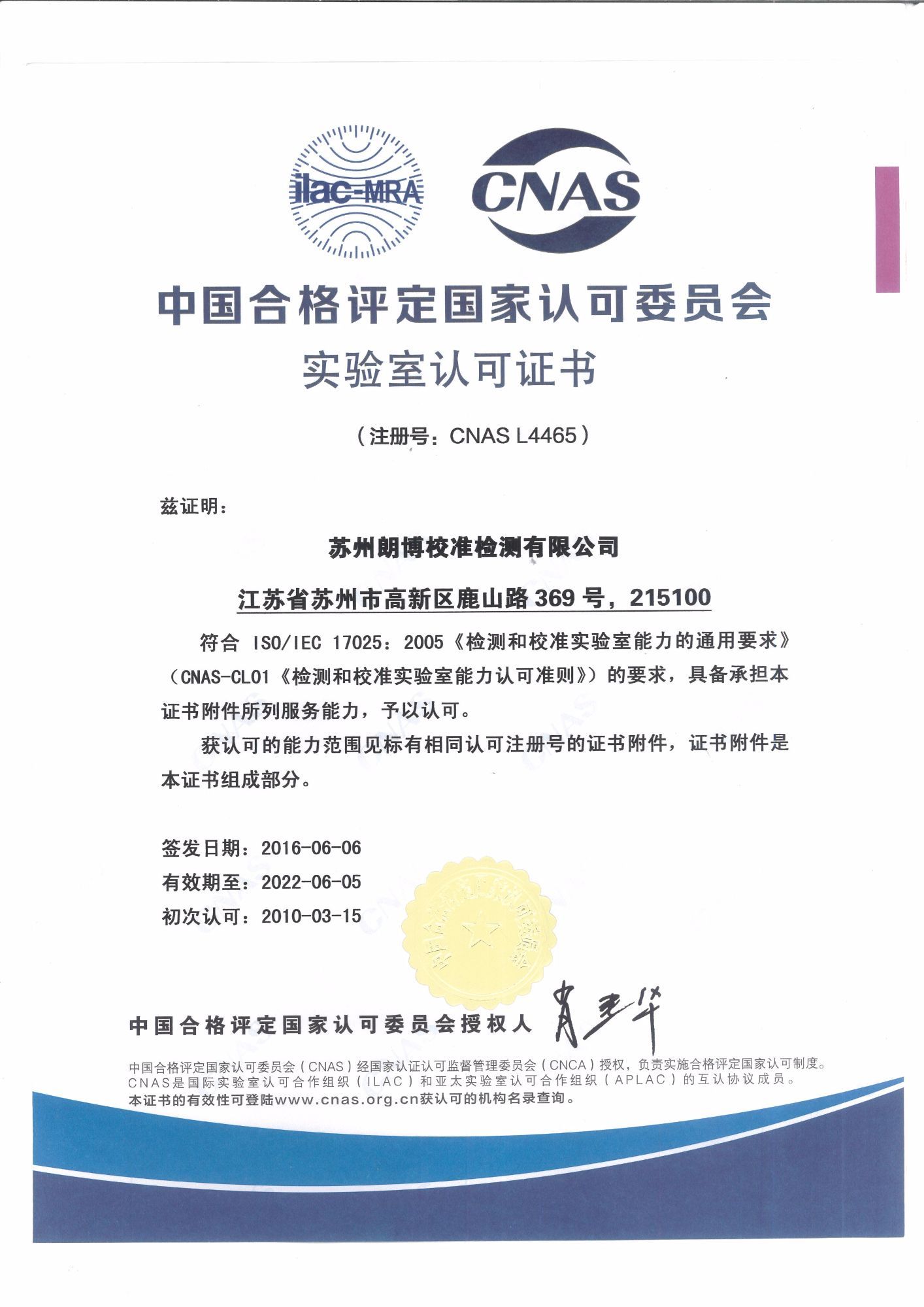 我司已通過浙江省計量校準機構備案有效期至2019年4月2日。朗博校準檢測有限公司(簡稱朗博實驗室)是...